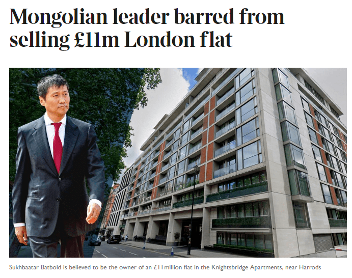 Энэ оны 12 дугаар сарын 23-ны өдөр Британийн өдөр тутмын “The Times” сонин дээр “Монголын удирдагч 11 сая фунтын орон сууцаа зарахыг хориглов” гэх нийтлэл хэвлэгдэн гарлаа.