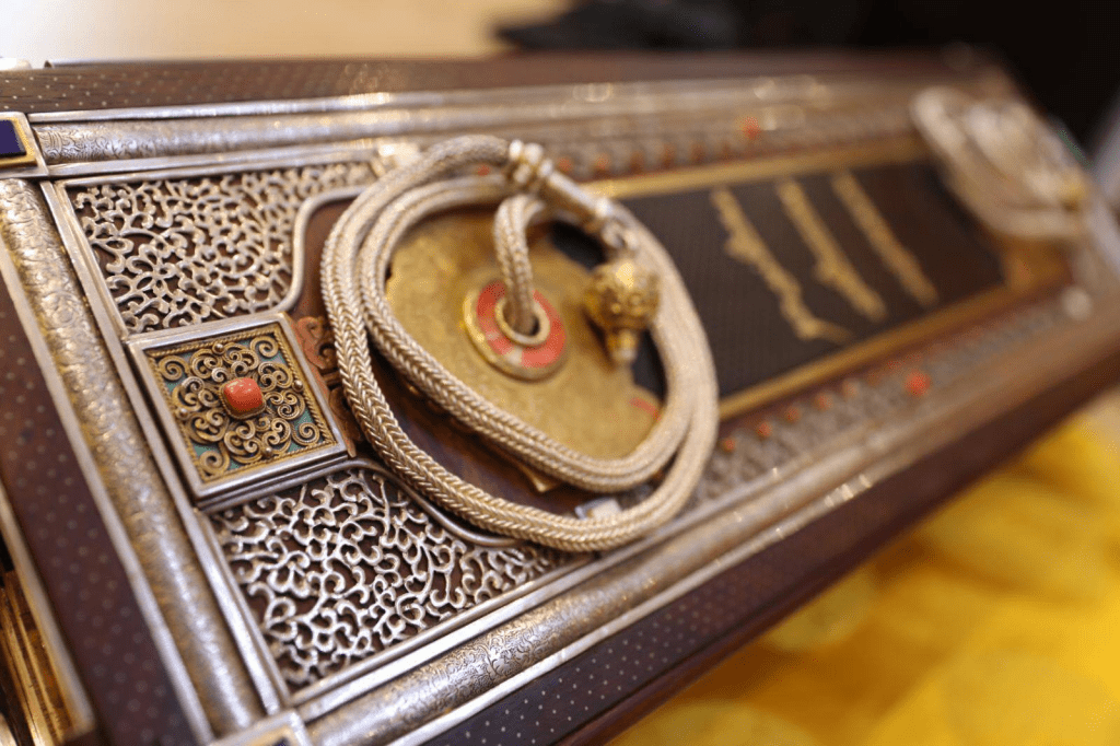 Энэхүү санал санаачилга, зорилгын хүрээнд Монголчуудын судар бүтээх эртний уламжлалыг үндэслэн, эрдэнийн судрын шоголыг СУИС-ийн “Хөх урлан”-д арван долоодугаар жарны гал бичин жил буюу аргын тооллын 2016 онд дархлан бүтээжээ. Монгол дарханы ур ухааныг шингээн, уламжлалт гар урлалын аргаар, есөн эрдэнээр тэтгэн “номын өр” буюу дэр хавтас нь ширээнээ угсраа залагдсан байдлаар дээрх шоголыг СУИС-ийн Д.Амгалангийн нэрэмжит Дүрслэх, дизайн урлагийн сургуулийн дарханы “Хөх урлан”-д бүтээгээд байна.